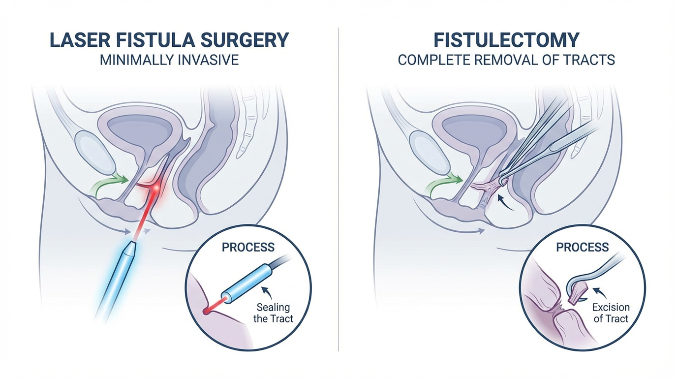 Dr. Soham Patel uses modern, minimally invasive techniques including laser fistula surgery and fistulectomy, ensuring: